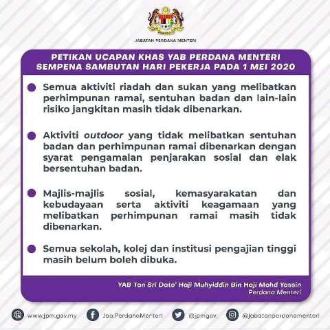 Petikan Ucapan Khas YAB Perdana Menteri Sempena Sambutan Hari Pekerja Pada 1 Mei 2020